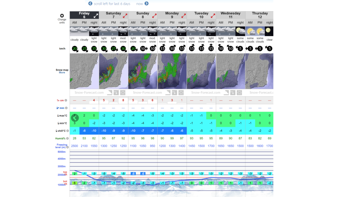 The vibe: Kinda retro, a lot of data, but the original snow forecasting site used often by guides around the world. Changes frequently, but often the most accurate.