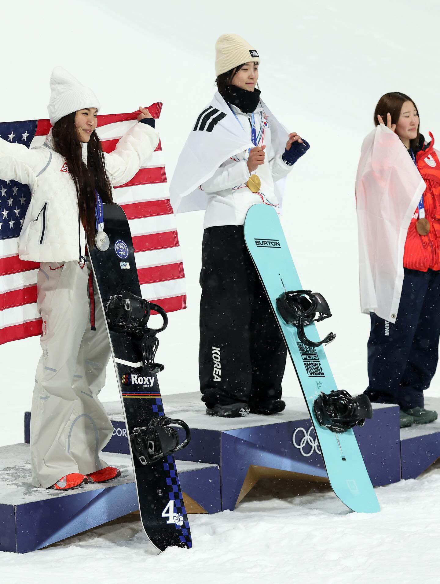 Gaon’s path to gold looked over before it began. Dropping early in the final, the Korean teenager clipped the deck attempting a Cab 1080 and slammed heavily into the pipe, lying on the snow while medics checked on her. She struggled again on run two, unable to put down a complete score, leaving her buried near last place with one run remaining.